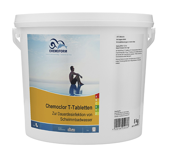 Chemochlor-T-Tabletten (табл. 20 г) 5 кг. Медленнорастворимый хлорпрепарат для длительного хлорирования (90% акт. хлора)Код: 0503005