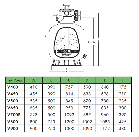 Фильтрационная емкость V500, клапан 1,5", 9 м3/час, загрузка песка 85 кгКод: V500