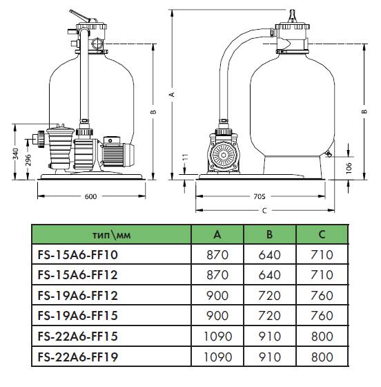 Фильтрационный комплект 475мм, 9 м3/час с насосом FREEFLO-15M, 0,55кВтКод: FS-19A6-FF15