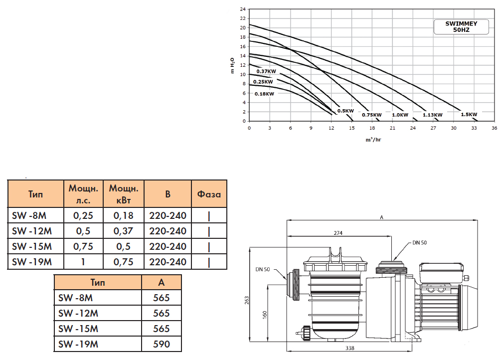 Насос Swiммey SW-19M 0,75 кВт, 12 м3/ч, 220ВКод: P7242180