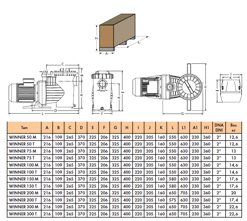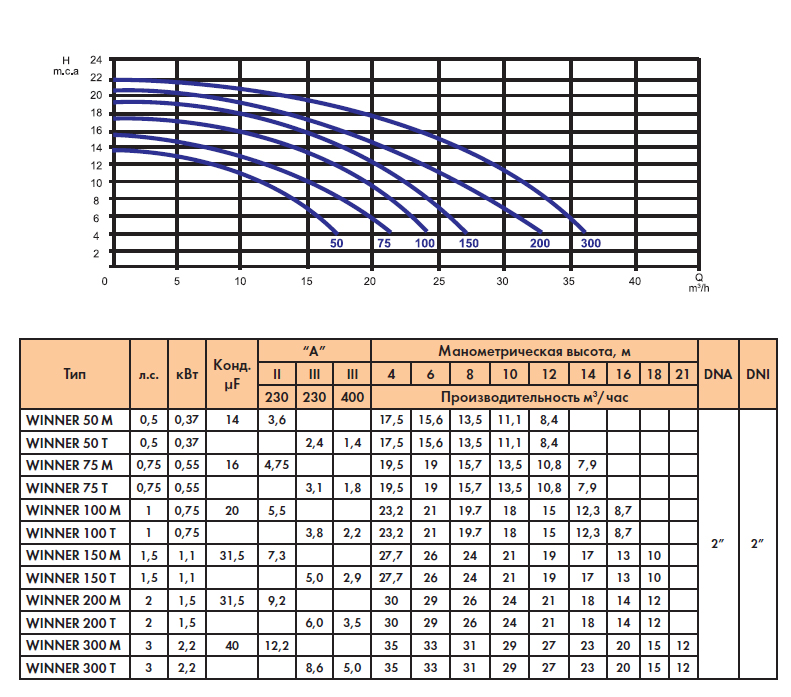 Насос Winner 200M, 220B, 26 м3/час, 1.5 кВт. 2"Код: 36104042
