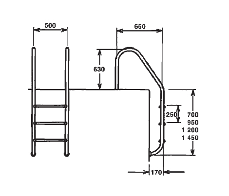 Лестницы предназначены для частных и коммерческих бассейнов, они изготовлены из полированной нержавеющей стали диаметром в 43 мм. Анкерование поставляется с втулкой и зажимом для соединения.