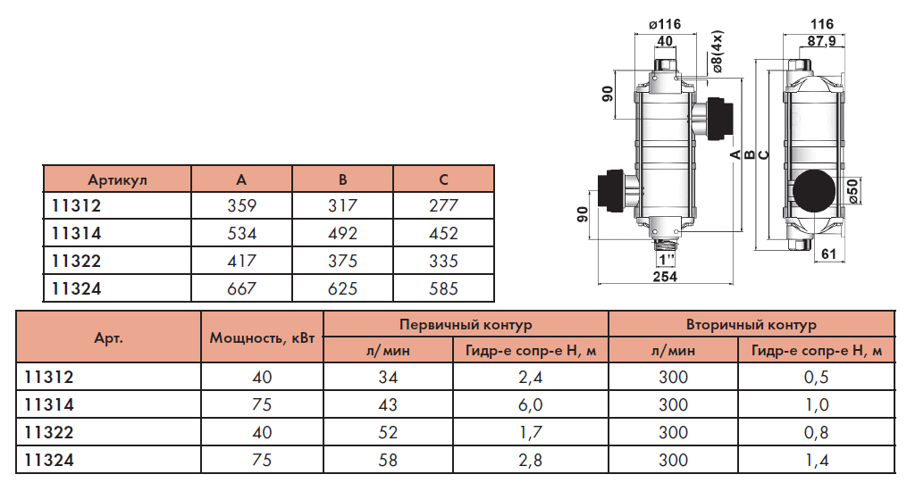 Теплообменник - Hi-Temp 40 кВтКод: 11312