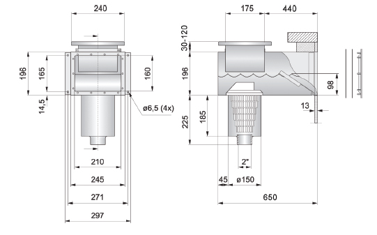 Скиммер PAHLEN нерж.сталь с удлиненной горловиной для перелива под бетон Код: 112999
