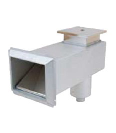 сливного отверстия и крышкой. Подключение: внутренняя резьба 2”. Скиммер с удлинённой горловиной для бассейнов из бетона. Передняя часть снабжена фланцем для крепления