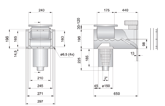 Передняя часть снабжена фланцем для крепления к стене бассейна.