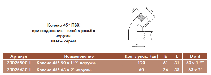 Колено 45° 63 х 2" наружн.Код: 7302563