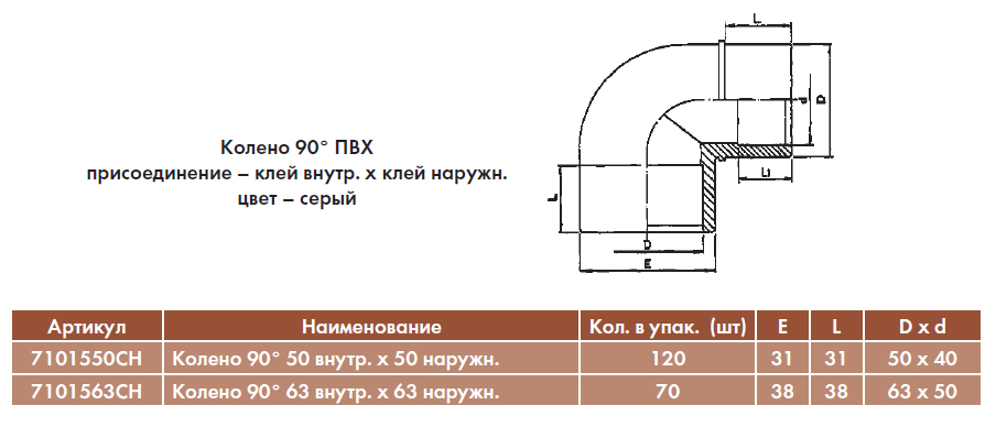 Колено 90° 50 внутр. х 50 наружн.Код: 7101550