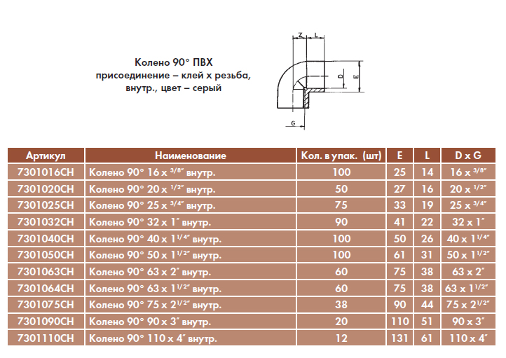 Колено 90° 63 x 1 1/2" внутр. Код: 7301064