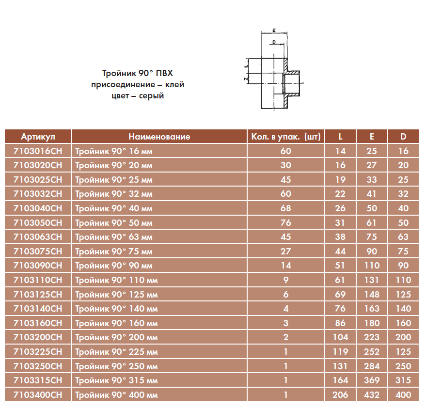 Тройник 90° 50 мм Код: 7103050