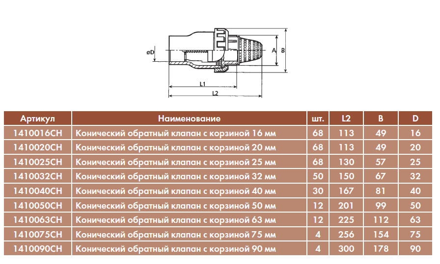 Конический обратный клапан с корзиной 40 ммКод: 1410040
