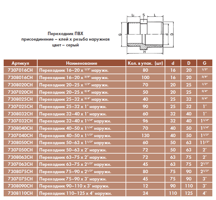 Переходник 25–32 x 3/4" наружн. Код: 7308025