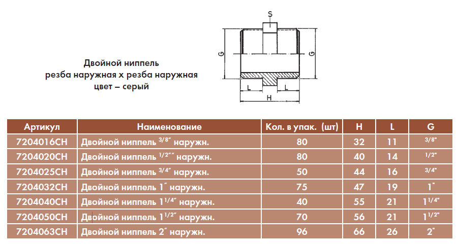 Двойной ниппель 3/4" наружн.Код: 7204025