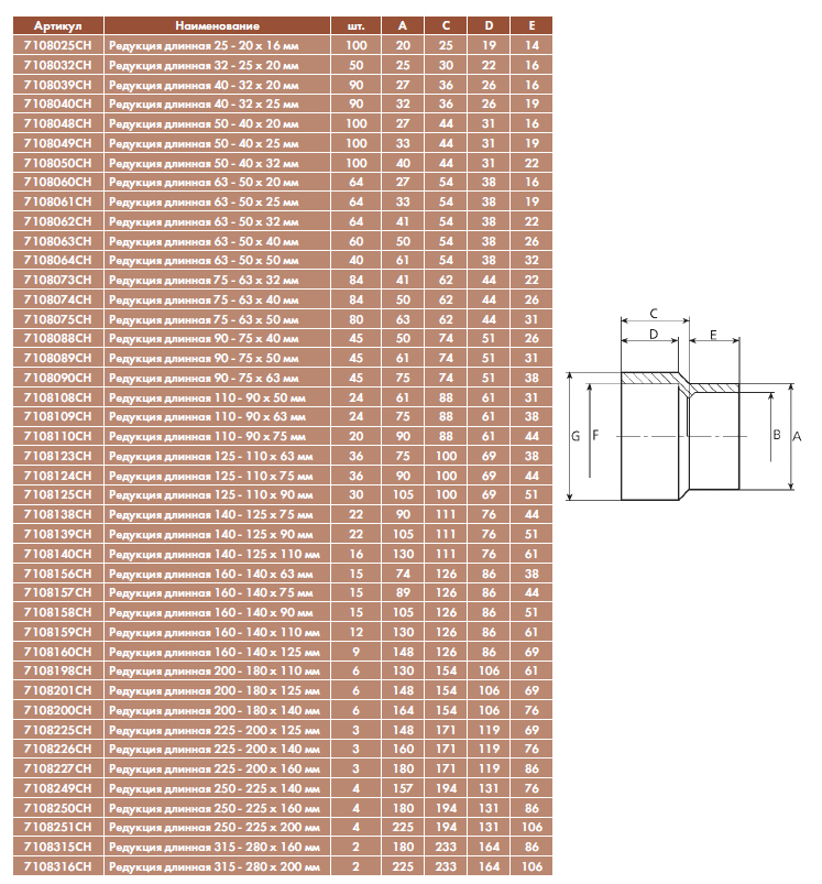 Редукция длинная 200 - 180 x 140 ммКод: 7108200