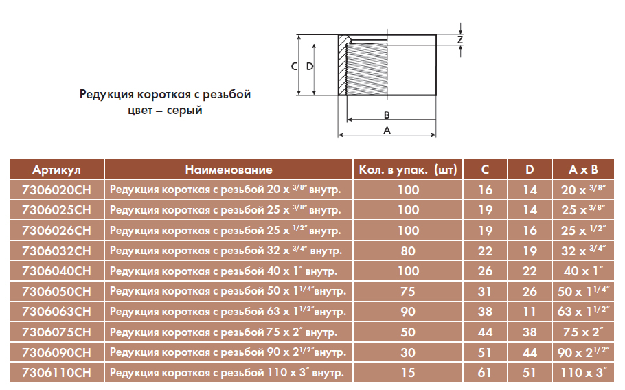 Редукция короткая с резьбой 110 x 3" внутр. Код: 7306110